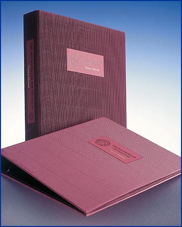 Rockefeller Foundation. A fluted binder with a smooth ribbed look & feel. The cover is debossed and enhanced by printed, colour co-ordinated labels on the front and spine. For detail, see below